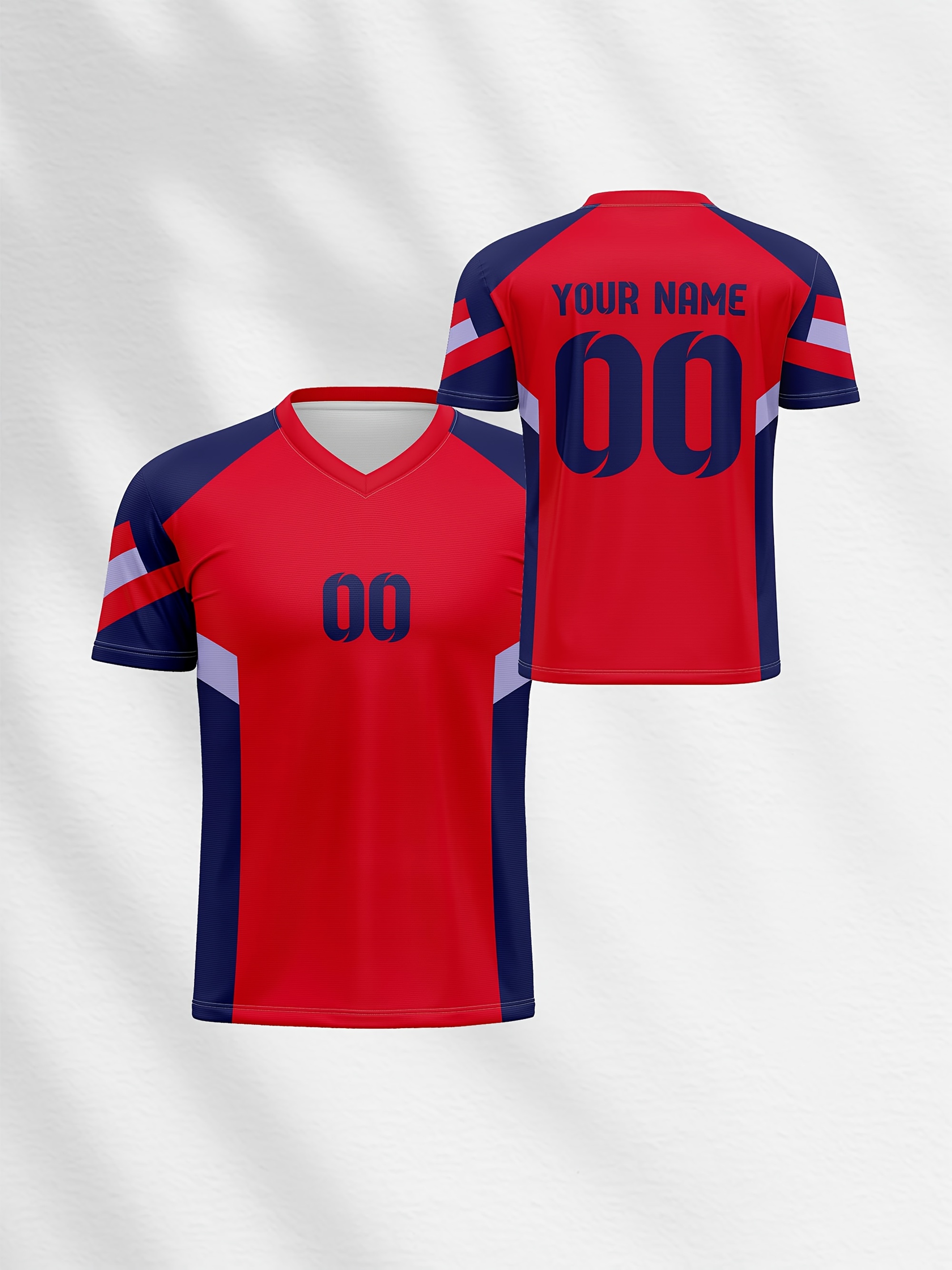 1pc Customizable Kids Football Jersey - V-Neck Polyester Soccer Top with Personalized Name & Number, Medium Stretch, All-Season Sports Knit Fabric for Boys & Girls, Ideal for Training, Beach, Weekend Casual & Birthday Events