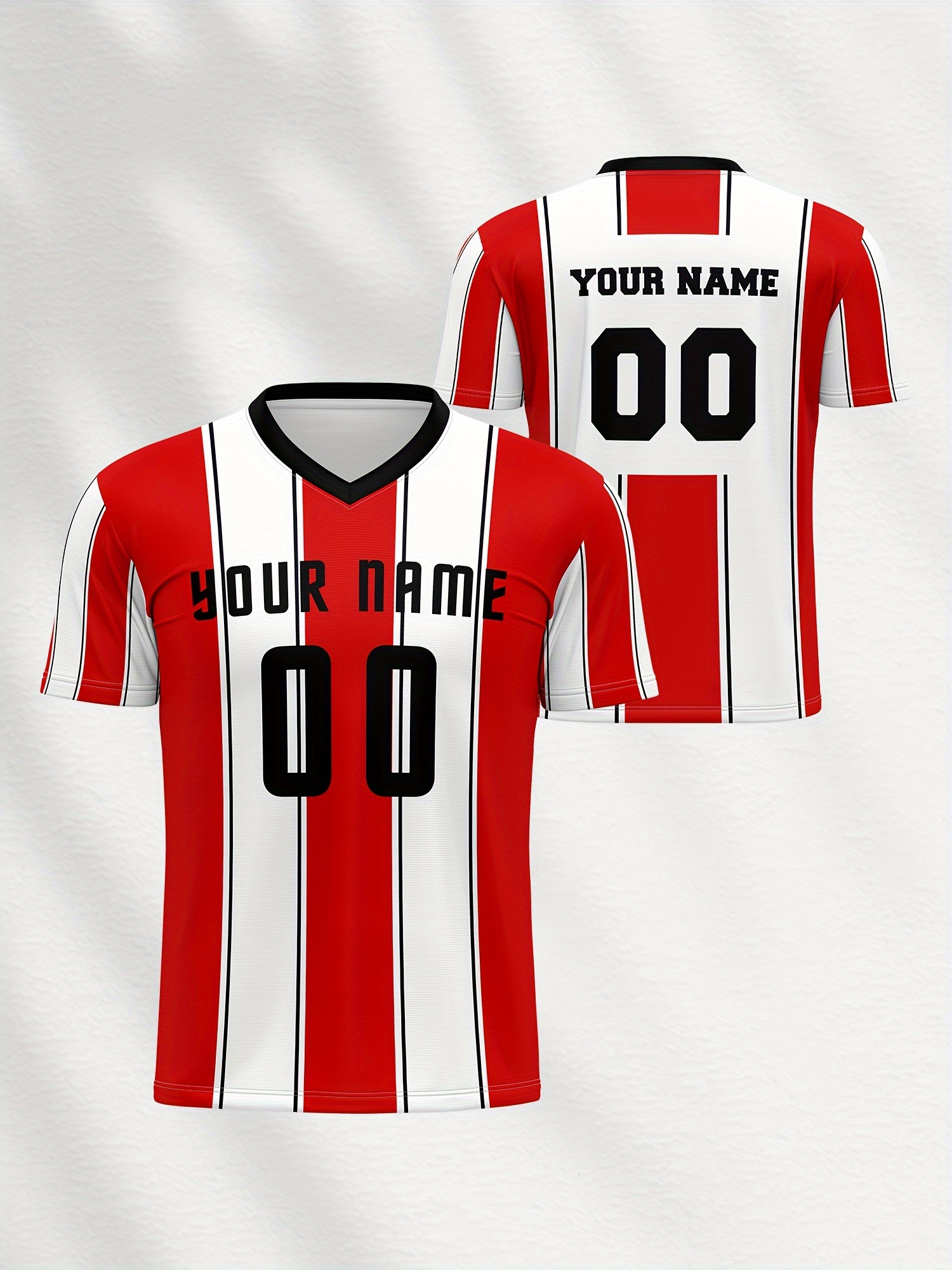 Custom Youngsters' Soccer Jersey - Quick-Dry, Breathable Polyester V-Neck T-Shirt with Personalized Name & Number Design for Boys & Girls - Perfect for Sports & Outdoor Activities, Running, Training, Beach Outings - Spring/Summer/Fall, Perfect for Outdoor