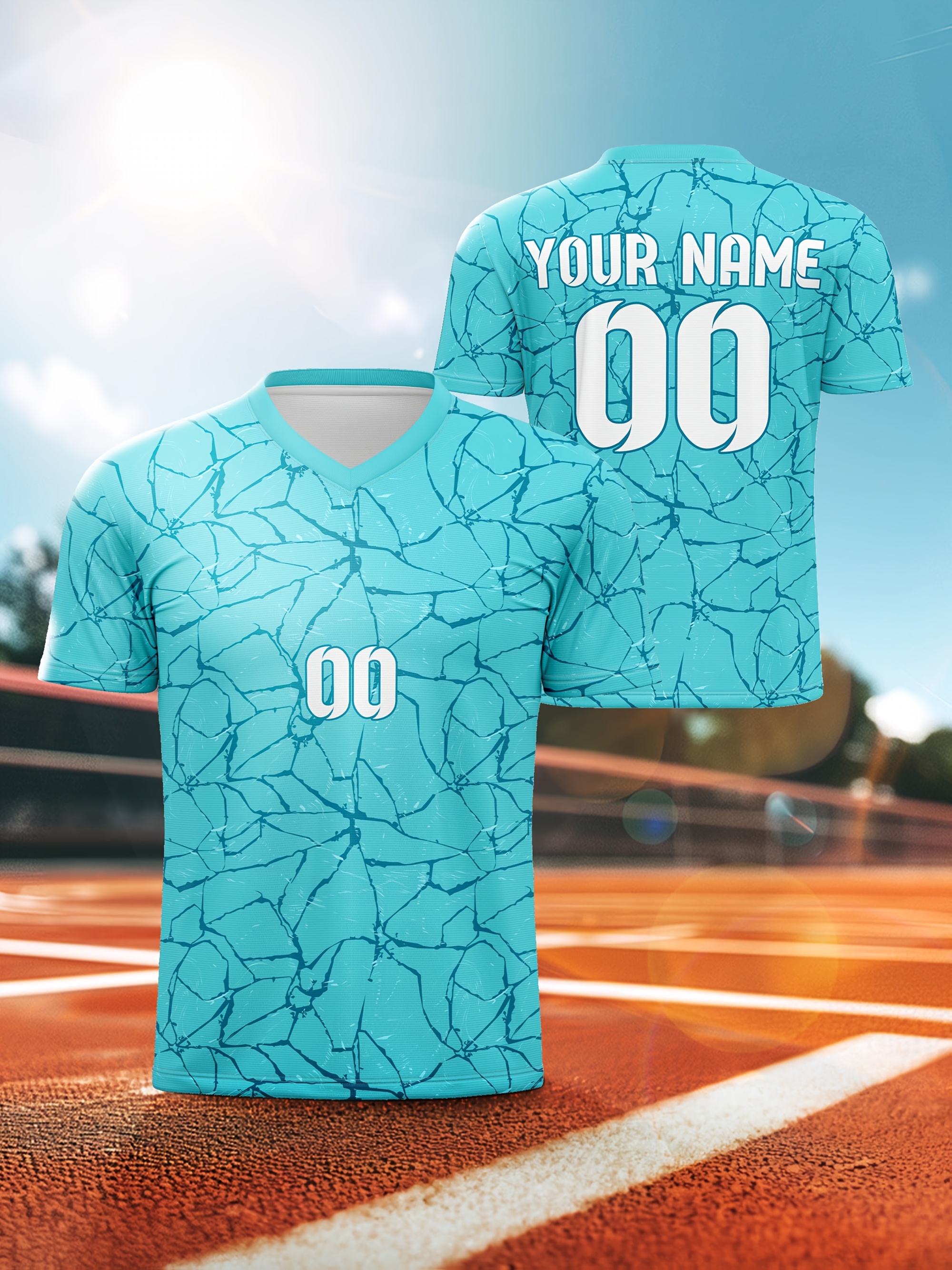Customizable Kids Soccer Jersey with Name and Number, Polyester V-Neck Sports Shirt, Medium Stretch Knit Fabric, All-Over Print, for Boys, Girls, and Teens, Casual, Running, Training, and Daily Wear, Spring/Summer/Fall