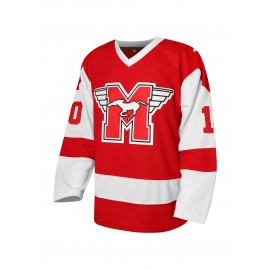 Mustangs 10 Youngblood Hamilton Jersey - Vintage #10 Men's Sports Uniform, Red & White with Horse Logo, Moisture-Wicking Polyester, V-Neck Captain's Sweatshirt for Team Sports & Casual Wear, Streetwear Fashion|Casual Design|Polyester Fabric