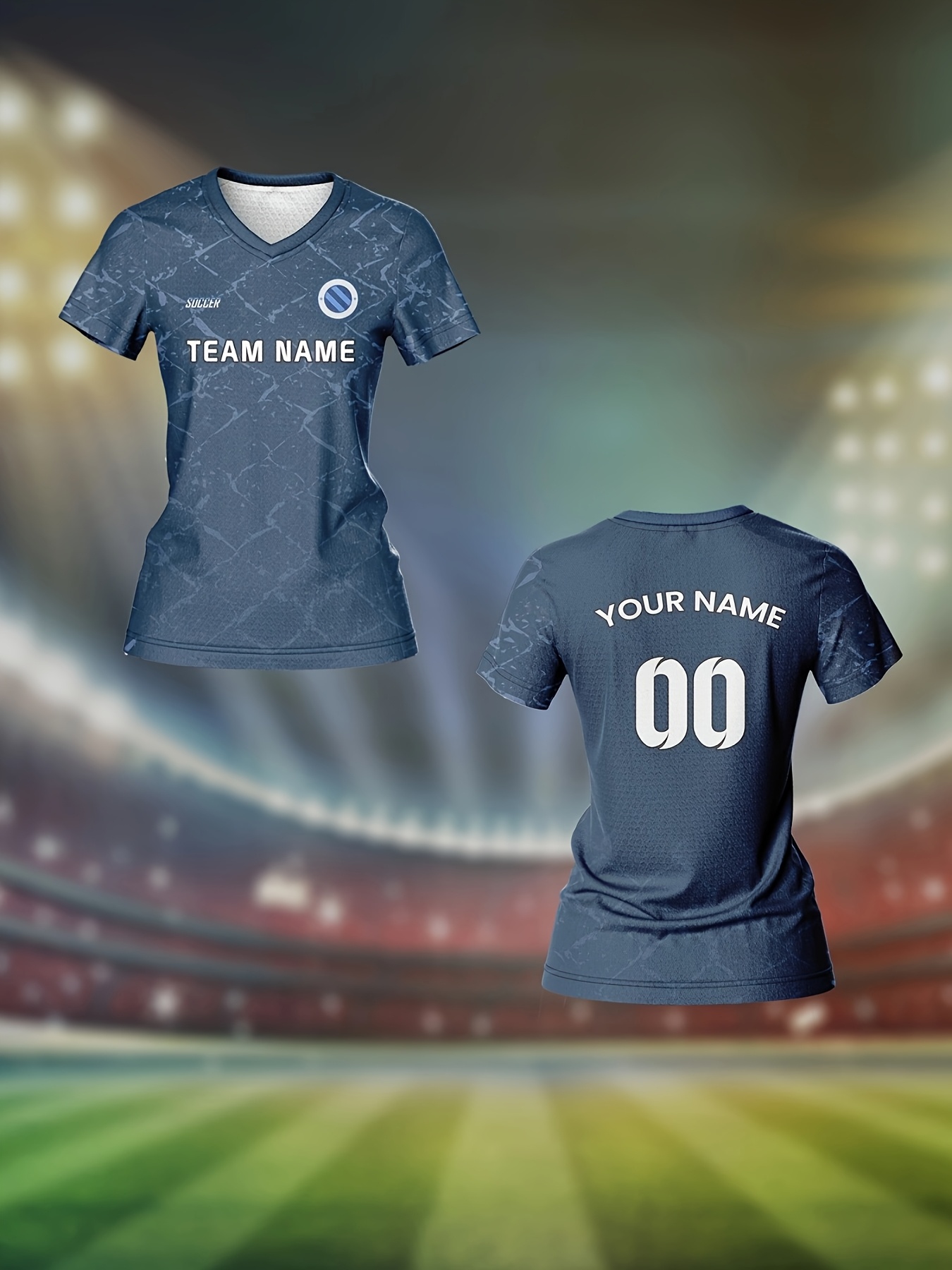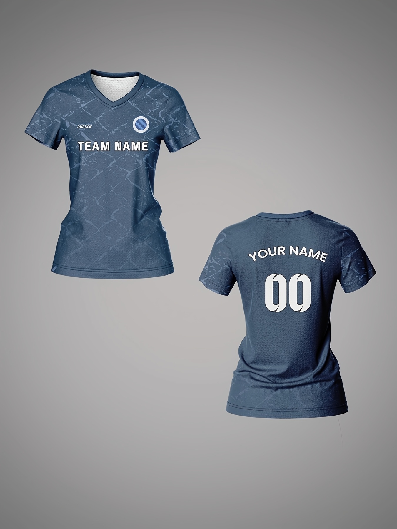 Custom Women's V-Neck Soccer Jersey - Personalized Name & Number, Breathable Quick-Dry Fabric, Team Training Fitness Casual Wear, Retro Street Futuristic Styles, Spring Summer Fall Sports Apparel, Soccer Accessories