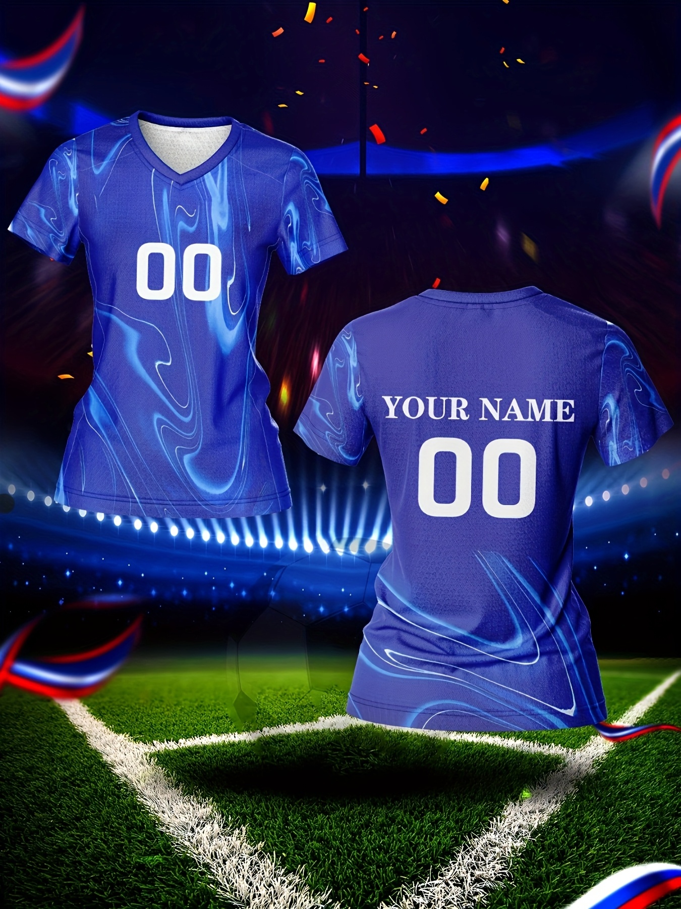 Customized Name & Number Women's V-Neck Football Jersey - Breathable Quick-Dry Moisture-Wicking Fabric, Full-Body Print Team Training & Casual Wear, Regular Fit Spring Summer Fall, Custom Football Jersey, Breathable Fabric