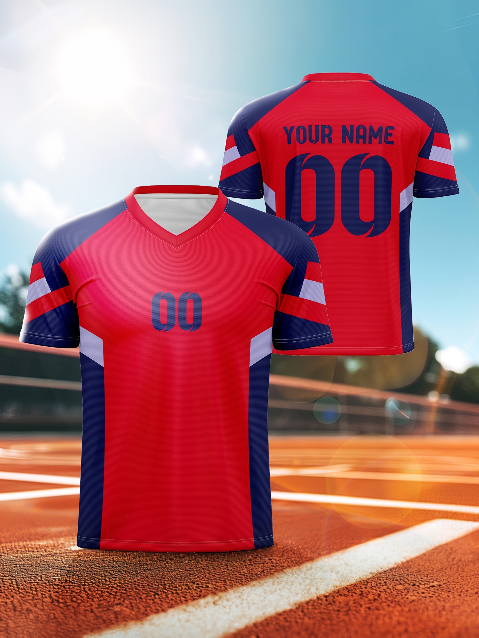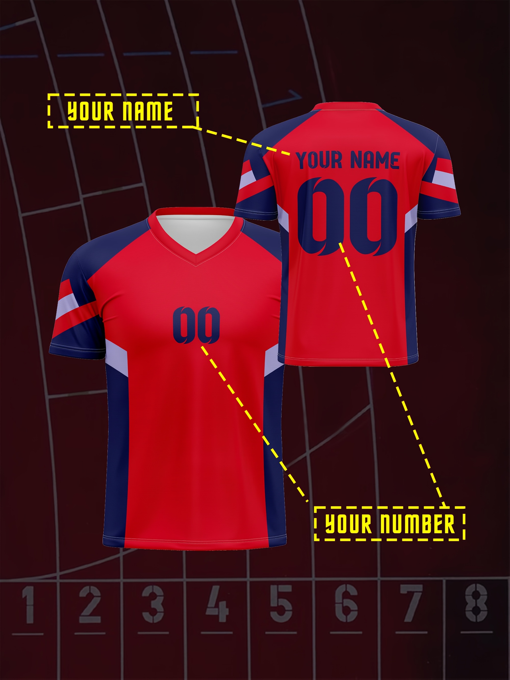 1pc Customizable Kids Football Jersey - V-Neck Polyester Soccer Top with Personalized Name & Number, Medium Stretch, All-Season Sports Knit Fabric for Boys & Girls, Ideal for Training, Beach, Weekend Casual & Birthday Events