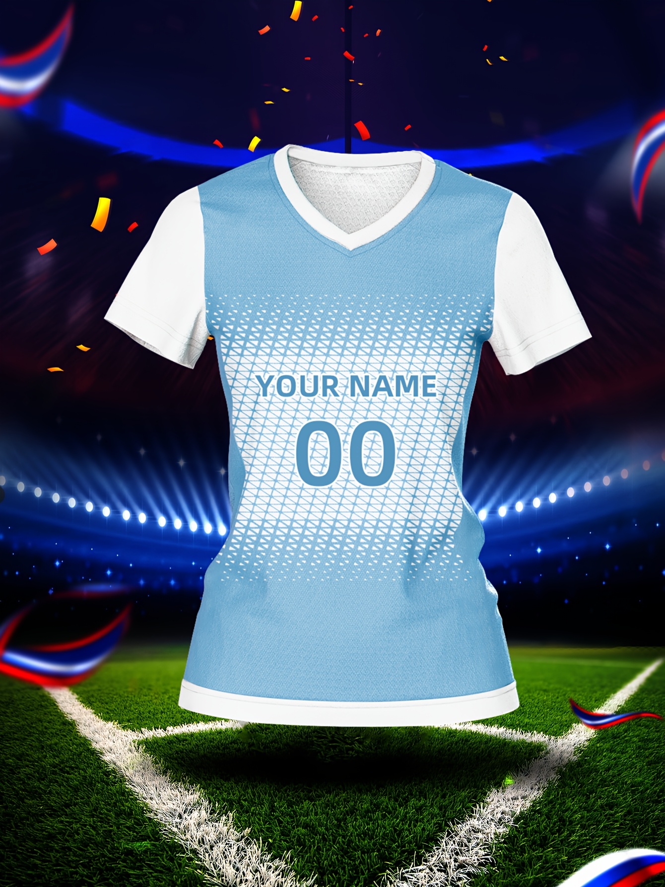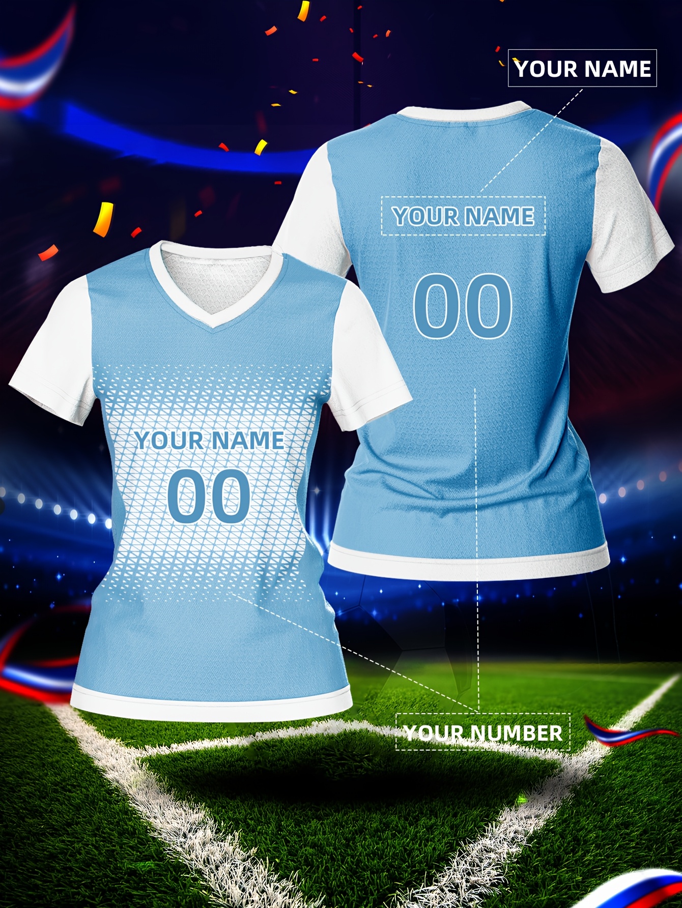 Customizable Women's V-Neck Soccer Jersey - Personalized Name & Number, Breathable Polyester, Quick-Dry Sports Top for Team Training & Casual Wear, Personalized Sports Gear | Customizable Soccer Shirt | Lightweight Jersey