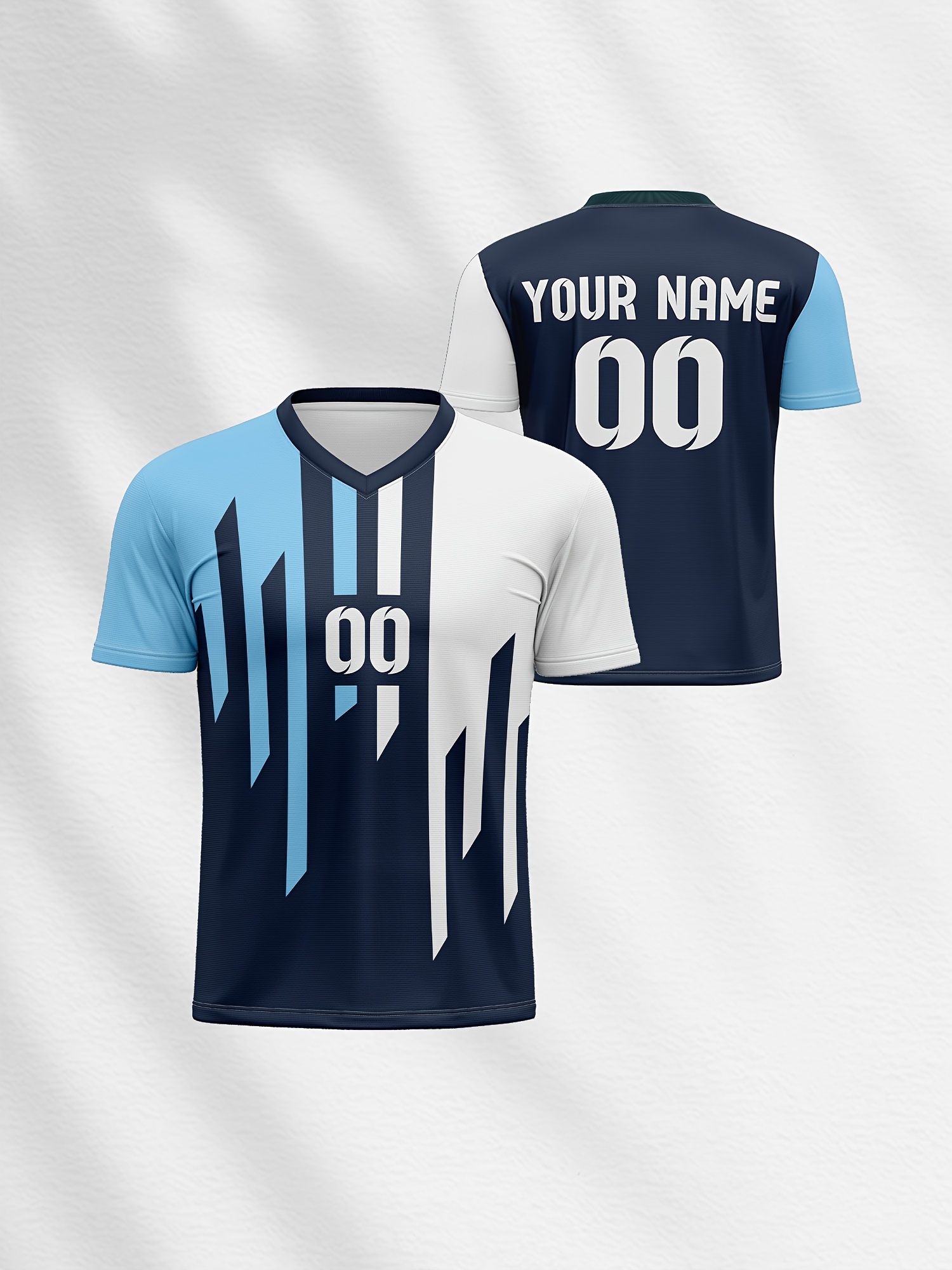 1pc Customizable Kids Soccer Jersey - V-Neck Polyester Football Top with Personalized Name & Number, Medium Stretch, All Over Print, Casual Sports Style for Boys & Girls, Perfect for Training, Beach, Weekend & Birthday Occasions