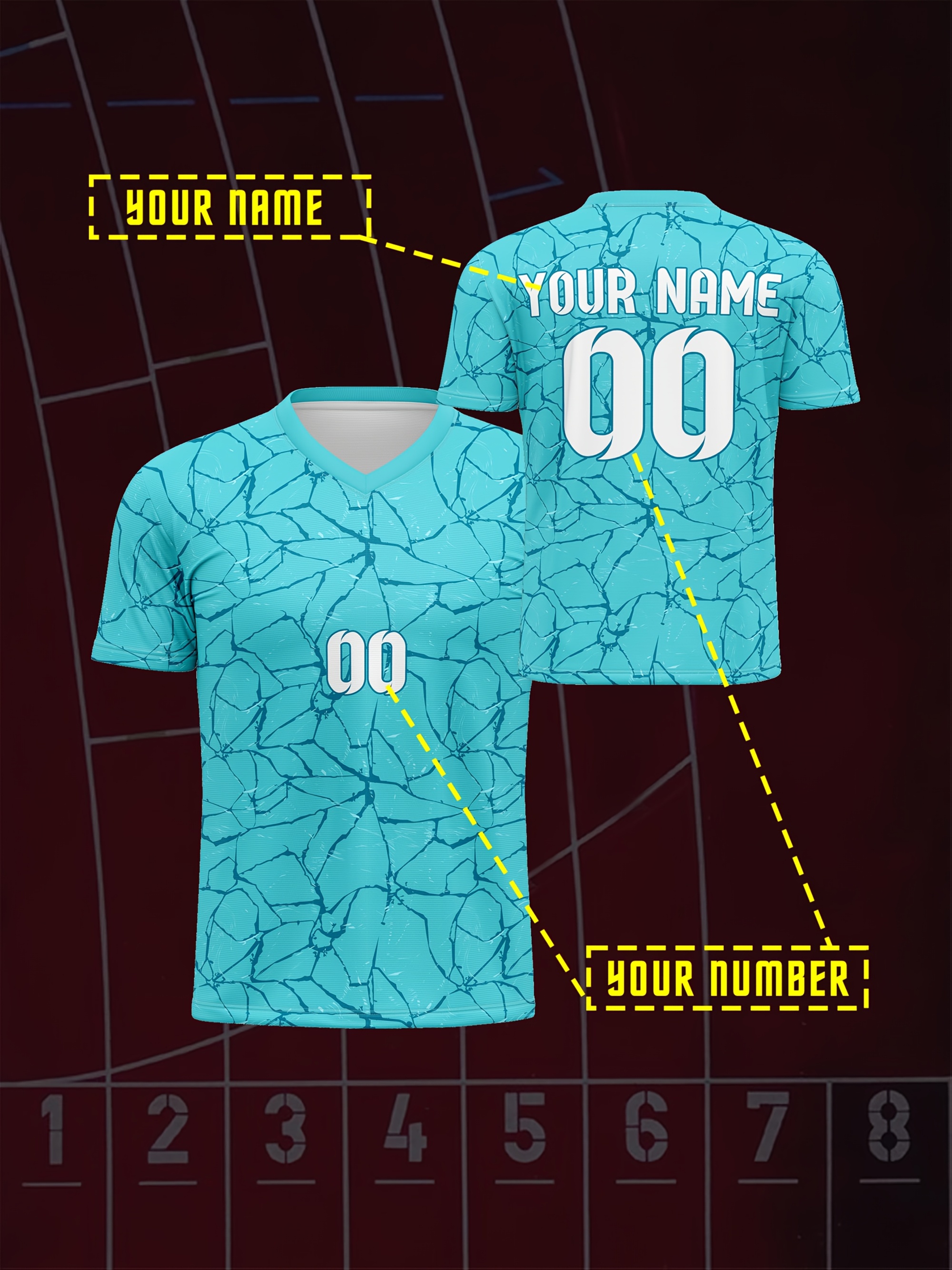 Customizable Kids Soccer Jersey with Name and Number, Polyester V-Neck Sports Shirt, Medium Stretch Knit Fabric, All-Over Print, for Boys, Girls, and Teens, Casual, Running, Training, and Daily Wear, Spring/Summer/Fall